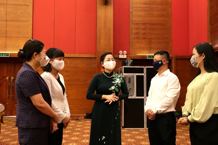 Phó Chủ tịch Hội LHPN Việt Nam Trần Thị Hương (giữa ảnh) trao đổi với các đại biểu