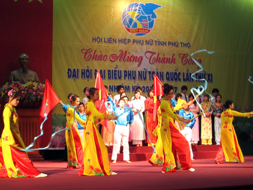 Tưng bừng chào mừng thành công Đại hội Đại biểu phụ nữ toàn quốc lần thứ XI, LHPN các tỉnh, thành đã tổ chức nhiều chương trình nghệ thuật đặc sắc và triển khai các hoạt động thiết thực nhằm sớm đưa Nghị quyết Đại hội vào cuộc sống. -