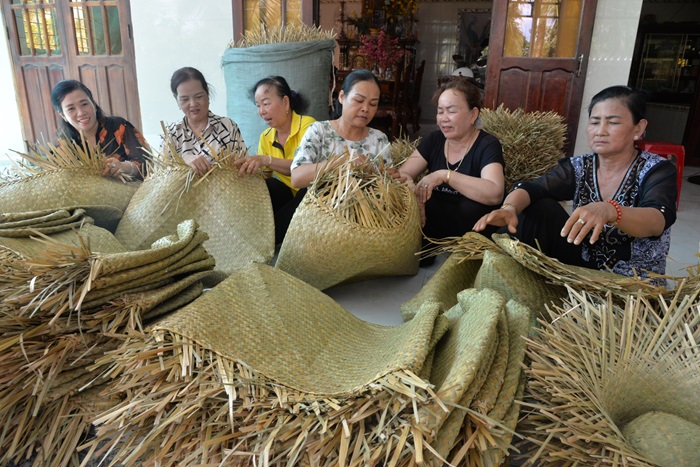 Tổ liên kết phụ nữ đan sản phẩm bàng.