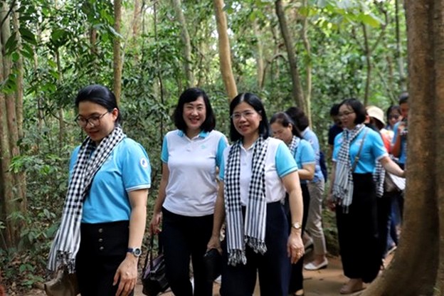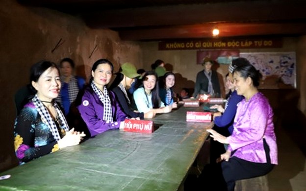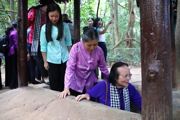 Thăm quan Khu di tích lịch sử Địa đạo Củ Chi. Chiều 12/6, Đoàn công tác Hội LHPN Việt Nam do bà Hà Thị Nga, Ủy viên Trung ương Đảng, Chủ tịch Hội LHPN Việt Nam, làm trưởng đoàn đã đến thăm Khu truyền thống Cách mạng Sài Gòn - Chợ Lớn - Gia Định và Khu di tích lịch sử Địa đạo Củ Chi (TPHCM).