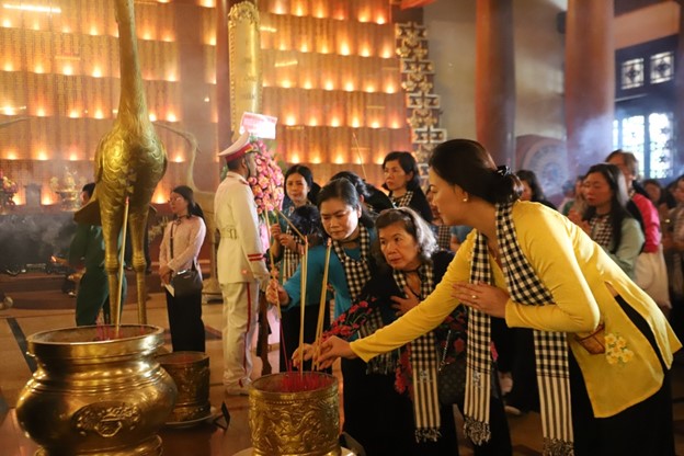 Bà Hà Thị Nga, Ủy viên Trung ương Đảng, Chủ tịch Hội LHPN Việt Nam, dâng hương tại Đền Bến Dược, Địa đạo Củ Chi