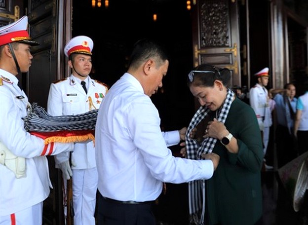 Bà Nguyễn Thị Minh Hương, Phó Chủ tịch Hội LHPN Việt Nam, được tặng khăn rằn
