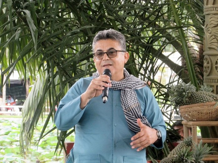 Ngài Saadi Salama - Đại sứ đặc mệnh toàn quyền Palestine tại Việt Nam - mặc áo bà ba khi đến Hậu Giang |