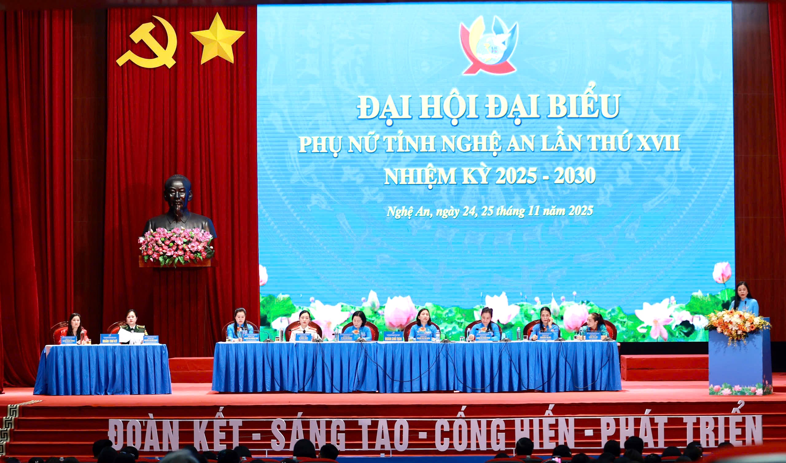 Đại hội Đại biểu Phụ nữ tỉnh Nghệ An lần thứ XVII, nhiệm kỳ 2025 - 2030, diễn ra trong hai ngày, 24-25/11 với chủ đề "Đoàn kết - Sáng tạo - Cống hiến - Phát triển"