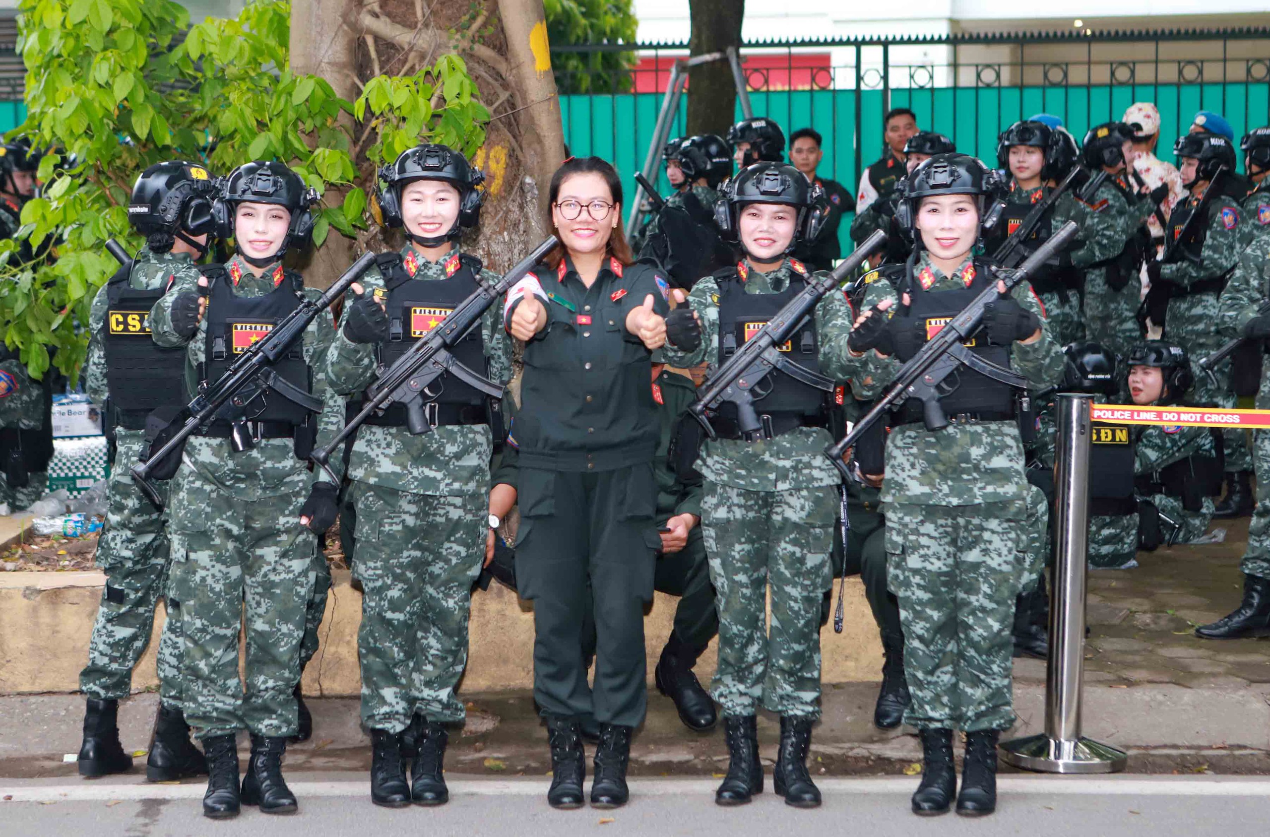 Trước khi diễn ra buổi Tổng hợp luyện diễu binh diễu hành, ngay từ chiều 21/8, lực lượng nữ các khối đã sẵn sàng tư thế, tinh thần chuẩn bị cho một buổi hợp luyện thành công. Giữa những phút hợp luyện, cũng có những khoảnh khắc nghỉ ngơi, giao lưu, kỷ niệm gần gũi, thân tình giữa những nữ quân nhân, nữ công an và lực lượng nữ dân quân, quần chúng khác.