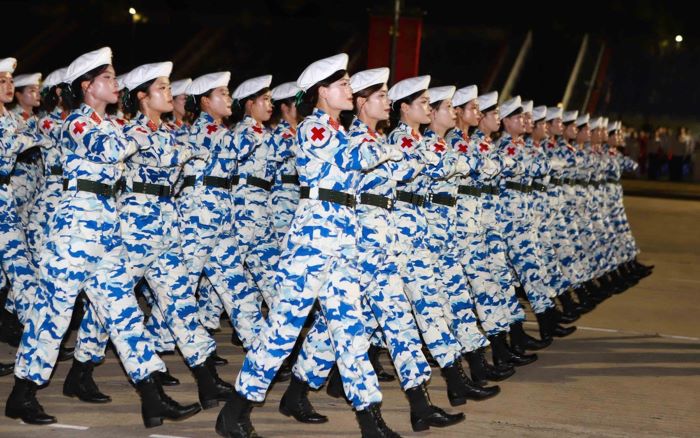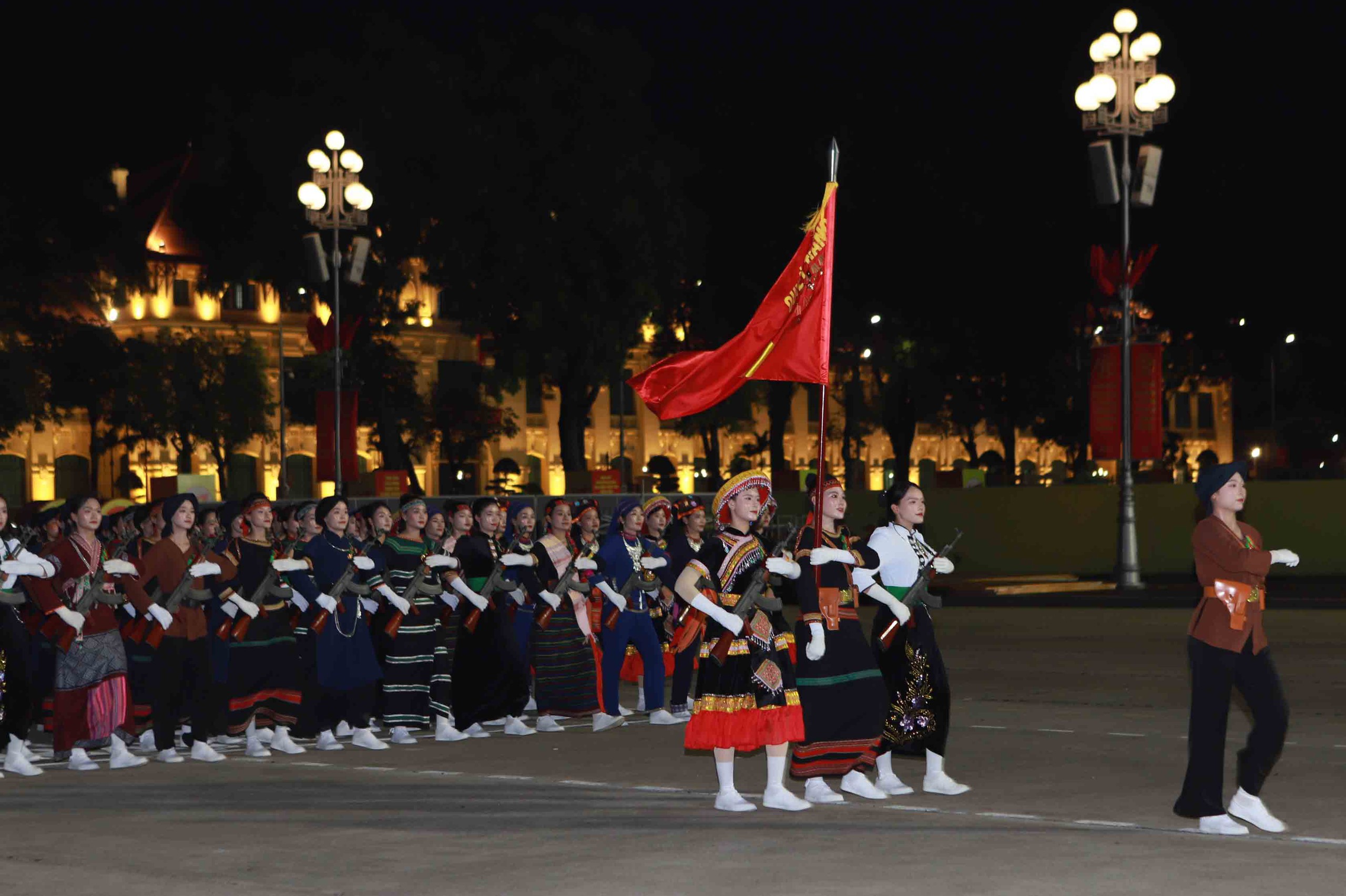 Một số hình ảnh của lực lượng phụ nữ các khối tham gia diễu binh, diễu hành tối 21/8: