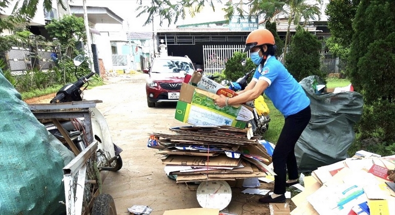 Phụ nữ TP. Bảo Lộc thu gom rác thải để gây quỹ giúp đỡ hội viên phụ nữ khó khăn, yếu thế.