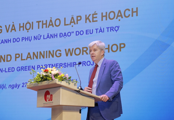Ông Gonzalo Serrano, Tham tán thứ nhất, Phó Trưởng Ban Hợp tác Phái đoàn Liên minh Châu Âu tại Việt Nam khẳng định, sự kiện khởi động hôm nay là cơ hội đầu tiên để giới thiệu đại diện các dự án do EU tài trợ đến với Hội LHPN Việt Nam. Ông bày tỏ mong muốn Dự án Đối tác Xanh do Phụ nữ lãnh đạo sẽ được thực hiện có kết quả trong 4 năm tới.
