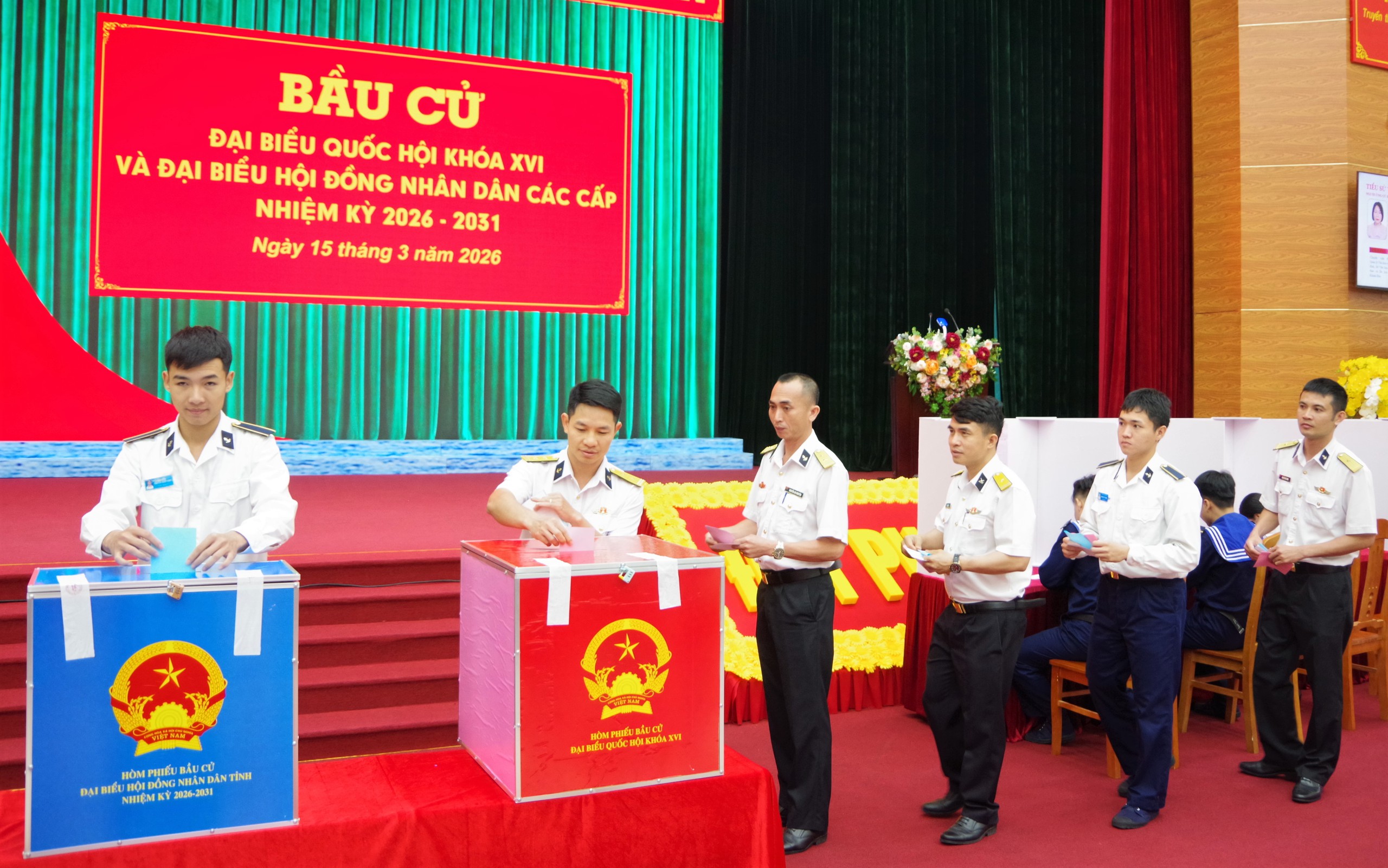 Tại khu vực bỏ phiếu, các cử tri thực hiện nghiêm túc các bước theo quy định. Sau khi xuất trình thẻ cử tri, mỗi người nhận phiếu bầu đại biểu Quốc hội và đại biểu HĐND các cấp, vào khu vực viết phiếu kín để lựa chọn đại biểu, sau đó trực tiếp bỏ phiếu vào hòm phiếu dưới sự giám sát của tổ bầu cử và các cử tri. Quá trình diễn ra trật tự, đúng trình tự, thể hiện ý thức kỷ luật và tác phong chính quy của môi trường quân đội.