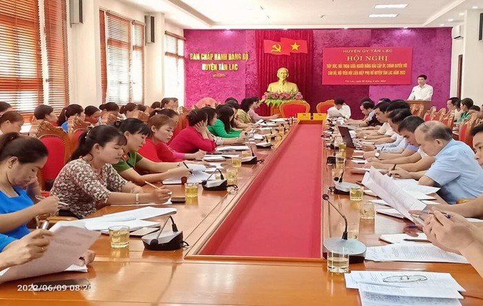 Lãnh đạo Hội LHPN tỉnh Hòa Bình dự hội nghị tiếp xúc, đối thoại giữa lãnh đạo cấp ủy, chính quyền và các ngành đoàn thể tại Hội LHPN huyện Tân Lạc Sau 03 năm triển khai thực hiện, các cấp hội đã tổ chức 87 cuộc tiếp xúc, đối thoại giữa người đứng đầu cấp ủy, chính quyền, các ngành liên quan với hội viên, phụ nữ về các Chính sách liên quan đến quyền, lợi ích của phụ nữ, gia đình, trẻ em và bình đẳng giới, thu hút 6.101 người tham gia.