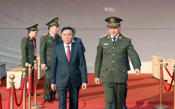 Thường trực Ban Bí thư Trần Cẩm Tú dự Lễ xuất quân, diễn tập phương án bảo đảm an ninh, trật tự Đại hội đại biểu toàn quốc lần thứ XIV của Đảng. (Ảnh: Phương Hoa/TTXVN) Thượng tướng Phạm Thế Tùng, Thứ trưởng Bộ Công an phát biểu tại buổi lễ. (Ảnh: Phương Hoa/TTXVN)