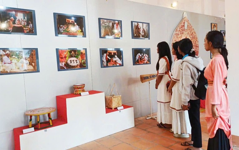Tại tháp Pô Klong Garai trưng bày chuyên đề với 88 hình ảnh tư liệu quý, tái hiện sinh động các nghi lễ truyền thống trong lễ hội