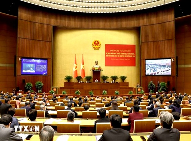 Hội nghị toàn quốc về đột phá phát triển khoa học, công nghệ, đổi mới sáng tạo và chuyển đổi số quốc gia tại điểm cầu Hội trường Diên Hồng - Nhà Quốc hội. (Ảnh: Phương Hoa/TTXVN)