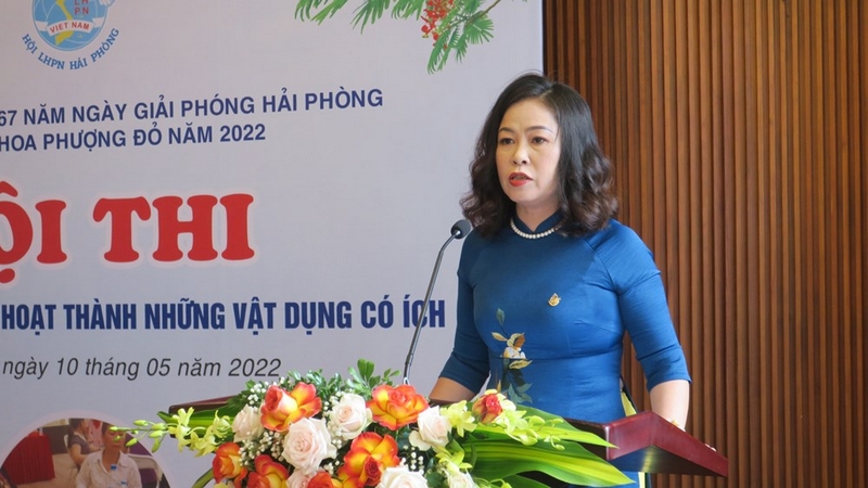 Phát biểu khai mạc Hội thi, đồng chí Vũ Thị Kim Liên – Chủ tịch Hội Liên hiệp Phụ nữ thành phố kêu gọi toàn thể cán bộ, hội viên, phụ nữ và nhân dân nâng cao ý thức, trách nhiệm trong hành trình nói không với túi ni lông và đồ nhựa dùng một lần: chị em phụ nữ khi đi chợ chủ động mang làn, túi vải, túi giấy, hộp/bát đựng thay thế túi ni lông, đồ nhựa dùng 1 lần; tái sử dụng túi ni lông nhiều lần; tái chế, tái sử dụng những rác thải nhựa thành đồ vật có ích. Hàng tuần, chúng ta sẽ thực hiện hoạt động “Cuối tuần xanh – Ngày đi chợ không túi ni lông”. Mỗi người một hành động nhỏ nhưng thiết thực sẽ góp phần góp phần “xây dựng Hải Phòng - thành phố Cảng xanh, văn minh, hiện đại…”