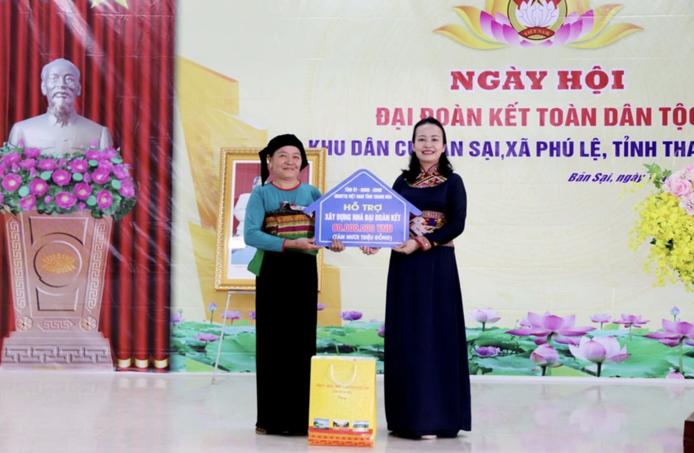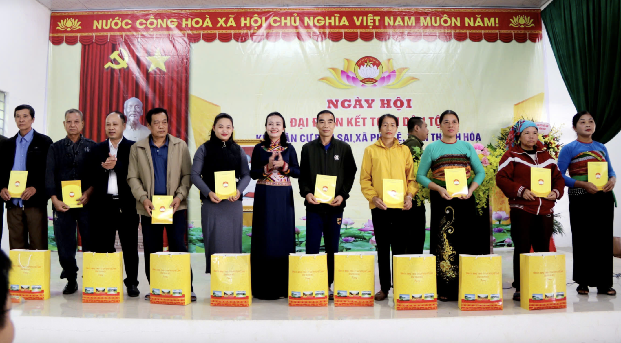 Nhân dịp này, Chủ tịch Hội LHPN tỉnh Thanh Hoá đã tặng cán bộ và Nhân dân bản Sại bức ảnh Chủ tịch Hồ Chí Minh bắt tay Chủ tịch Tôn Đức Thắng - biểu tượng thiêng liêng của khối đại đoàn kết toàn dân tộc Việt Nam; trao 10 suất quà của Tỉnh ủy, HĐND, UBND, Ủy ban MTTQ tỉnh cho hộ gia đình có hoàn cảnh khó khăn và hỗ trợ 80 triệu đồng kinh phí xây nhà cho hộ gia đình bà Lương Thị Yêu; trao tặng 15 phần quà cho hội viên, phụ nữ có hoàn cảnh khó khăn.