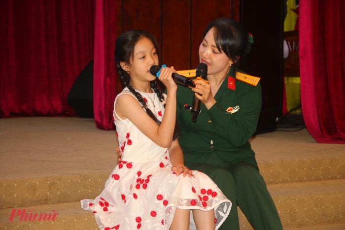Mẹ đỡ đầu Trần Thị Lý – Hội Phụ nữ Bộ Chỉ huy Quân sự tỉnh Thừa Thiên Huế - cùng con Hồ Bảo Ngọc (Quê xã Hương Toàn, Thị xã Hương Trà) biểu diễn giao lưu bài hát cho con sáng tác nhạc sĩ Phạm Trọng Cầu