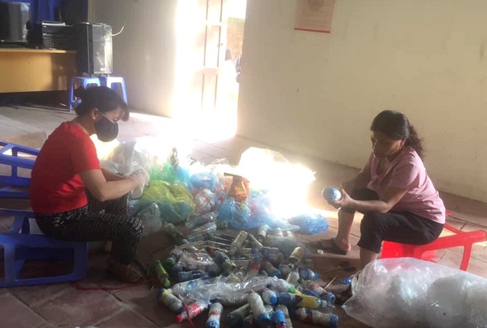Hội viên phụ nữ Lạng Sơn thu gom chai nhựa để làm gạch nhựa xây tường hoa, bồn cây cảnh...