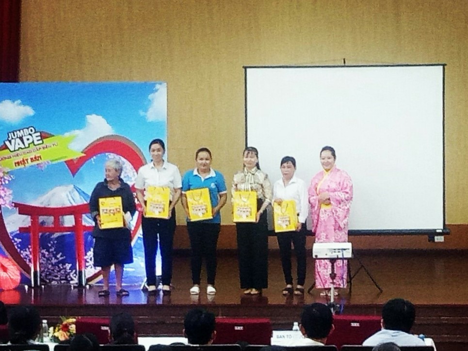Dịp này, đại diện Nhãn hàng JUMBO VAPE tặng mỗi đại biểu tham dự một phần quà trị giá 150 ngàn đồng, gồm 01 bình xịt muỗi JUMBO VAPE, 02 Hộp nhang muỗi, 01 quạt tay, 01 túi đựng quà chất liệu thân thiện môi trường.