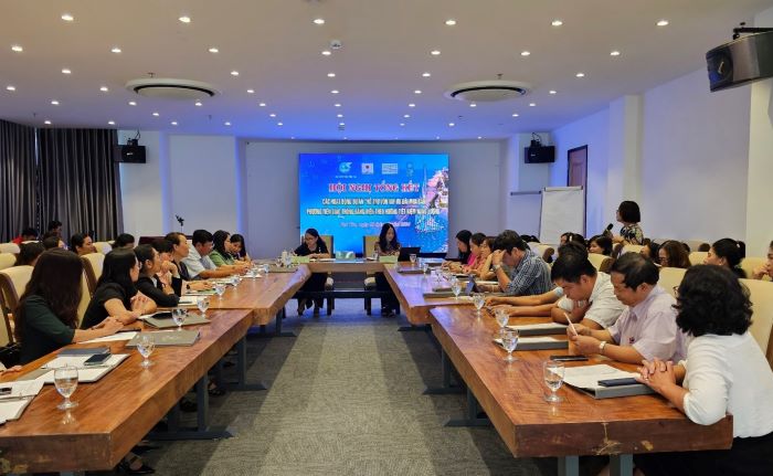 Phó Chủ tịch Hội LHPN tỉnh Trần Thị Binh và bà Trịnh Thị Bích Thủy, Cán bộ Dự án UNDP chủ trì Hội nghị