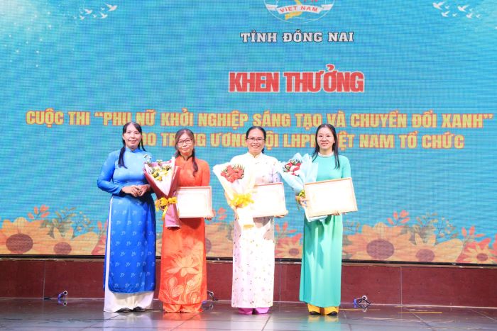 Trong khuôn khổ chương trình Ngày hội đã diễn ra Toạ đàm hành trình phụ nữ khởi nghiệp sáng tạo và chuyển đổi xanh. Thông qua nội dung toạ đàm, các đại biểu được chia sẻ những tiềm năng, cơ hội, thách thức và kinh nghiệm khi phụ nữ khởi nghiệp sáng tạo và chuyển đổi xanh. Nội dung toạ đàm cũng đã cổ vũ các chị tự tin, mạnh dạn hơn trong quá trình khởi nghiệp của bản thân, mạnh dạn thay đổi, cải tiến quy trình sản xuất, áp dụng công nghệ mới để tạo ra sản phẩm, dịch vụ đáp ứng được nhu cầu của thị trường gắn với yêu cầu bảo vệ môi trường và an toàn sức khỏe cho cộng đồng. Đặc biệt, các đại biểu được đại diện Sở Khoa học và Công nghệ tỉnh trực tiếp hướng dẫn, triển khai các quy định, chính sách hỗ trợ pháp lý xây dựng nhãn hiệu, sở hữu trí tuệ; Hội LHPN tỉnh giới thiệu kênh thông tin chuyên mục Hỗ trợ phụ nữ khởi nghiệp - phát triển kinh tế và phụ nữ ứng dụng công nghệ thông tin, chuyển đổi số trên các nền tảng Fanpage, Zalo OA và Cổng thông tin điện tử Hội LHPN tỉnh. Dịp này, Hội LHPN tỉnh khen thưởng cho 03 cá nhân có thành tích trong tham gia cuộc thi Phụ nữ khởi nghiệp sáng tạo và chuyển đổi xanh năm 2024 do Trung ương Hội LHPN Việt Nam tổ chức. Khen thưởng các cá nhân đoạt giải cuộc thi Thiết kế video clip truyền thông bảo vệ môi trường năm 2024 với chủ đề Phụ nữ Đồng Nai sống xanh.