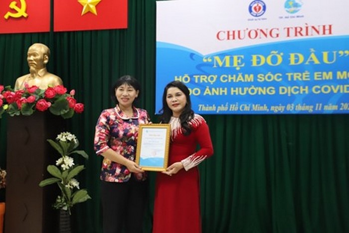 Hội LHPN TPHCM phối hợp cùng Quỹ từ thiện Kim Oanh tổ chức chương trình “Mẹ đỡ đầu” trao tặng kinh phí hỗ trợ cho trẻ em mồ côi do dịch Covid-19.