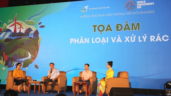 Các đại biểu tham gia tọa đàm với chủ đề phân loại và xử lý rác thải tại hộ gia đình