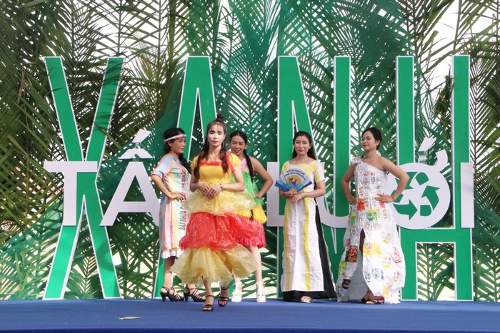 Tiết mục trình diễn thời trang từ túi nilon và giấy báo cũ