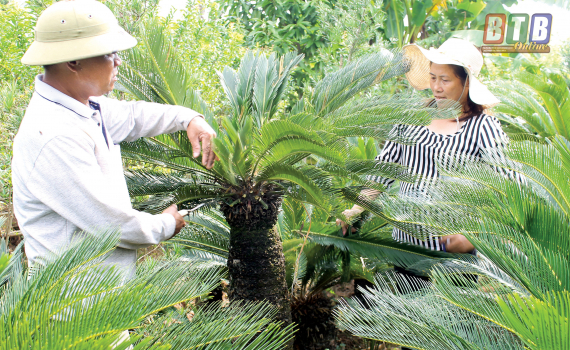 Gia đình anh Phạm Văn Định, thôn Bách Tính hiện có hơn 3 mẫu vườn trồng các loại cây cảnh, cây công trình, cây hàng lá như: sanh, si, tùng la hán, nhài cổ, tường vi, vạn tuế, hoa hồng, trắc bách diệp, mẫu đơn... Ngoài sản xuất, gia đình anh còn thu mua các loại cây này tại địa phương để bán ra thị trường trong, ngoài nước. Trước kia, việc trồng các loại cây trong vườn, số lượng cây nhiều hay ít thường do gia đình anh tự “liệu” nên có lúc lượng cây ít không đủ nhu cầu tiêu thụ, có lúc lại thừa. Nhiều hộ khác cũng vậy nên việc sản xuất, kinh doanh mặt hàng cây hoa, cây cảnh ở địa phương chưa đạt hiệu quả cao. Từ khi chị Trịnh Thị Khánh, vợ anh Định thành lập và tham gia Tổ hợp tác sản xuất và kinh doanh cây cảnh, cây hàng lá, việc sản xuất, kinh doanh các mặt hàng này của gia đình anh Định có sự liên kết chặt chẽ với các hộ khác tại địa phương.