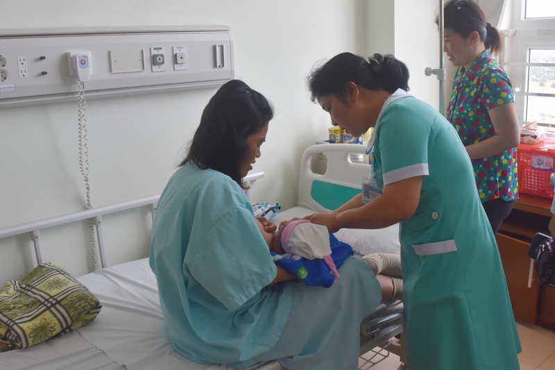 Thạc sĩ Lê Thị Khánh Quy hướng dẫn sản phụ chăm sóc trẻ sơ sinh tại Bệnh viện Bà Rịa.