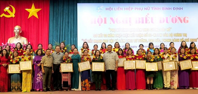 Tặng Bằng khen cho tập thể, cá nhân có thành tích xuất sắc trong 2 năm thực hiện CVĐ “Học tập và làm theo tư tưởng, đạo đức, phong cách Hồ Chí Minh”. Ngày 14/6, Hội Liên hiệp Phụ nữ tỉnh Bình Định tổ chức Hội nghị biểu dương "Phụ nữ Bình Định làm theo gương Bác Hồ" và sơ kết 2 năm thực hiện Kết luận số 01-KL/TW của Bộ Chính trị về tiếp tục thực hiện Chỉ thị số 05-CT/TW ngày 15/5/2016 của Bộ Chính trị khóa XII "Về đẩy mạnh học tập và làm theo tư tưởng, đạo đức, phong cách Hồ Chí Minh".