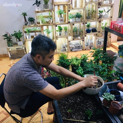 Cả 2 người trồng cây, người làm mộc, vừa bán cây vừa thiết kế sân vườn, chăm cây ốm cho khách. Công việc nhiều nhưng áp lực tài chính cũng tăng lên gấp bội vì cả 2 không có 1 mức lương ổn định mà đều trông chờ vào nguồn thu nhập từ vườn và từ khách hàng cũng có lúc bấp bênh.
