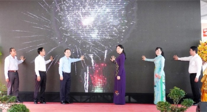 Bà Hà Thị Nga, Ủy viên TƯ Đảng, Chủ tịch Hội LHPN Việt Nam (thứ 3 từ phải qua) cùng lãnh đạo thành phố Cần Thơ bấm nút khai mạc Ngày hội Phụ nữ sáng tạo - khởi nghiệp 2023 do Hội LHPN TP. Cần Thơ tổ chức