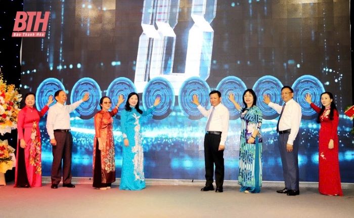 Các đại biểu bấm nút chính thức khai mạc “Ngày phụ nữ sáng tạo - Khởi nghiệp” năm 2024 - Thanh Hóa: Khai mạc “Ngày phụ nữ sáng tạo - khởi nghiệp” năm 2024