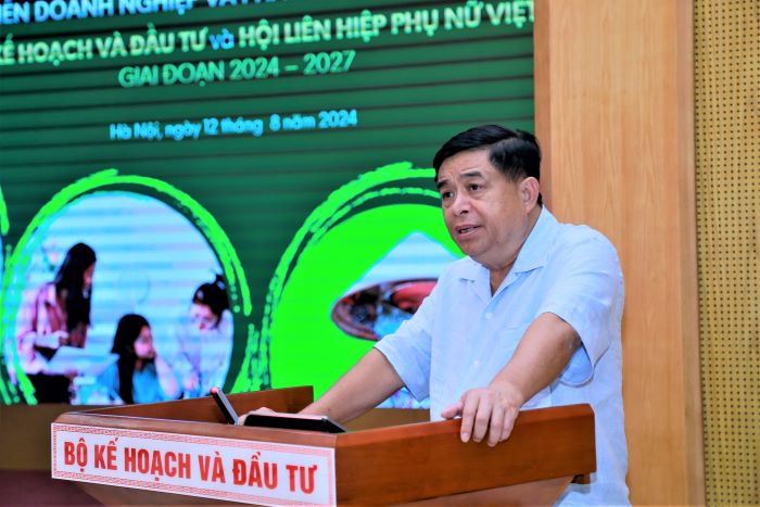 Bộ trưởng Bộ Kế hoạch và Đầu tư Nguyễn Chí Dũng ghi nhận, đánh giá cao sự chủ động, năng động, tích cực và tâm huyết của TW Hội LHPN Việt Nam trong nhiều năm qua đã có những đóng góp tích cực trong triển khai các hoạt động thúc đẩy trao quyền kinh tế cho phụ nữ, hỗ trợ phụ nữ khởi nghiệp, lập nghiệp. Bên cạnh đó, với vai trò là cơ quan tham mưu cho Chính phủ về hỗ trợ phát triển doanh nghiệp, kinh tế tập thể, thời gian qua, Bộ đã phối hợp với các cơ quan, tổ chức hiệp hội tham mưu cho Chính phủ, Quốc hội ban hành nhiều cơ chế, chính sách nhằm tháo gỡ khó khăn, tạo môi trường đầu tư kinh doanh thuận lợi, hỗ trợ doanh nghiệp, hợp tác xã phát triển. Trong quá trình tham mưu cho Chính phủ các cơ chế, chính sách, chương trình hỗ trợ doanh nghiệp, hợp tác xã, Bộ luôn nhận được sự ủng hộ, đồng hành của các tổ chức chính trị, tổ chức chính trị xã hội và các tổ chức quốc tế.