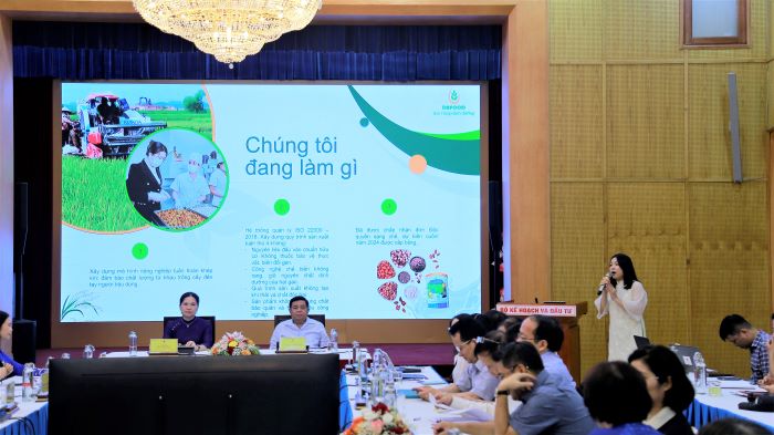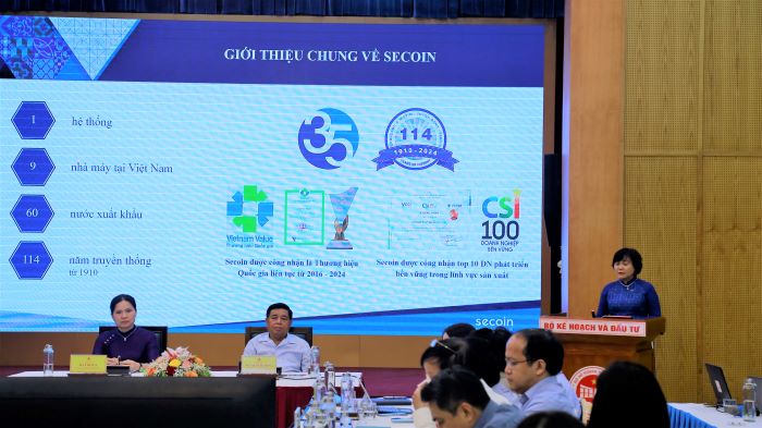 Bà Đinh Hoài Giang, Phó Chủ tịch Hệ thống Secoin, Tổng Giám đốc công ty cổ phần vật liệu xây dựng Secoin chia sẻ về sản phẩm và sự hỗ trợ của Bộ Kế hoạch và Đầu tư