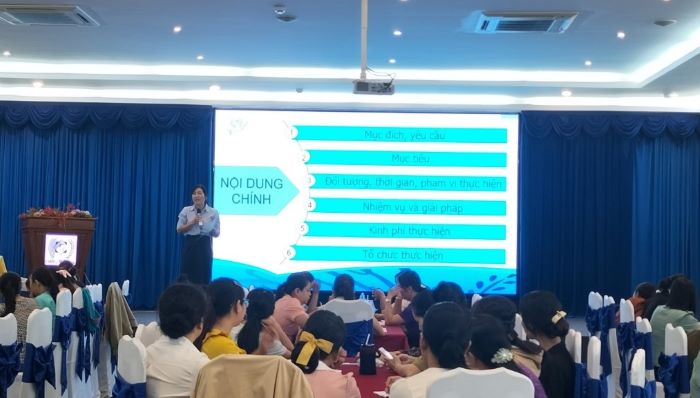 Quang cảnh Hội thảo Tham dự hội thảo có khoảng 70 đại biểu đại diện lãnh đạo các sở, ban, ngành, đoàn thể tỉnh; Ủy ban nhân dân các huyện,thị xã, thành phố là thành viên Ban Chỉ đạo, Tổ giúp việc Đề án 01 cấp tỉnh; BCH Hội LHPN tỉnh; Chủ tịch/Phó Chủ tịch Hội LHPN các huyện, thị xã, thành phố; đại diện lãnh đạo quản lý các HTX, Tổ hợp tác trên địa bàn tỉnh Vĩnh Long.