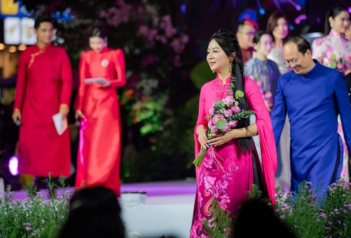 NTK Kim Phú luôn biết ơn cơ duyên được NTK Đỗ Trịnh Hoài Nam dìu dắt đi từng bước đến thành công với áo dài