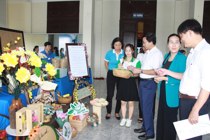 Các đại biểu tham quan gian hàng trưng bày sản phẩm của chị em phụ nữ khởi nghiệp