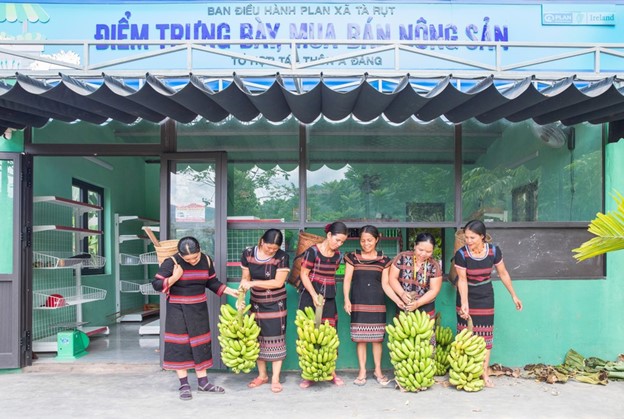 Song song với đó, tổ chức Plan International cũng đã hỗ trợ chị em nơi đây xây dựng gian hàng, tập huấn kỹ thuật, bán hàng online, tìm kiếm thị trường ở các đô thị lớn như Lao Bảo, Khe Sanh, Đông Hà, các siêu thị, cửa hàng… Chương trình "Tiến về phía trước" do Đại sứ quan Ireland tài trợ thông qua Tổ chức Plan International tại Việt Nam đã giúp Hội phụ nữ xã Tà Rụt thành lập Tổ hợp tác thôn A Đăng.