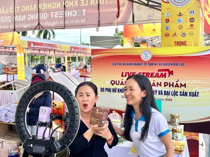 Trong những năm qua, hỗ trợ phụ nữ khởi nghiệp được các cấp Hội LHPN toàn tỉnh quyết tâm thực hiện, truyền lửa khởi nghiệp với nhiều cách làm sáng tạo. Nổi bật như tham gia Tuần lễ khởi nghiệp sáng tạo lần thứ 5 - TechFest Quang Nam 2024 vừa qua, Câu lạc bộ hỗ trợ phụ nữ khởi nghiệp thành phố Tam Kỳ - Đại Lộc đã ứng dụng công nghệ số lan tỏa cách làm hay thông qua livestream bán sản phẩm khởi nghiệp trên nền tảng mạng xã hội Facebook.