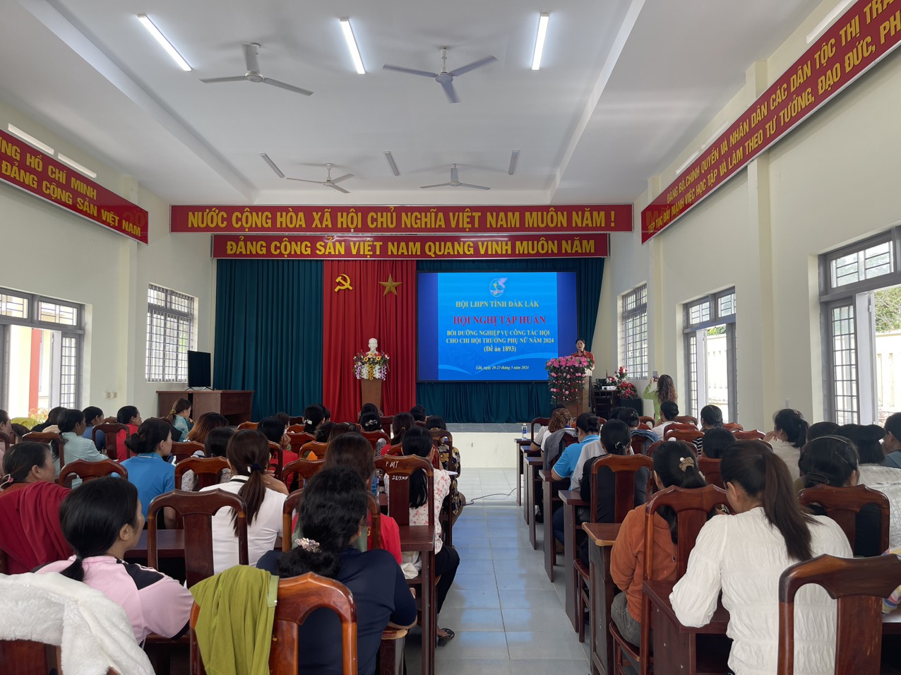 Trong khuôn khổ triển khai thực hiện Đề án bồi dưỡng cán bộ, công chức Hội LHPN các cấp và chi hội trưởng phụ nữ giai đoạn 2019 - 2025” (Đề án 1893), Hội LHPN tỉnh tổ chức hội nghị tập huấn bồi dưỡng nghiệp vụ công tác Hội cho hơn 90 chi hội trưởng phụ nữ trên địa bàn huyện Lắk.