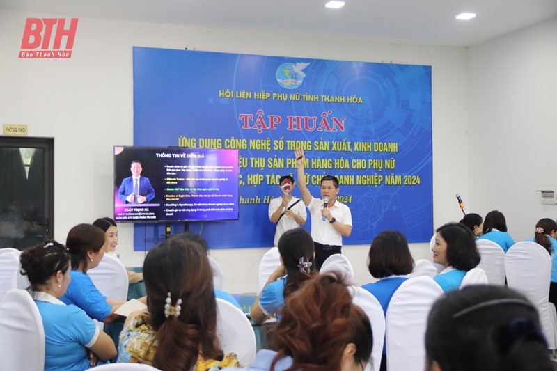 Lớp tập huấn ứng dụng công nghệ số trong sản xuất, kinh doanh và kết nối tiêu thụ sản phẩm hàng hóa cho các học viên là ban điều hành, thành viên các THT, HTX, nữ chủ doanh nghiệp.