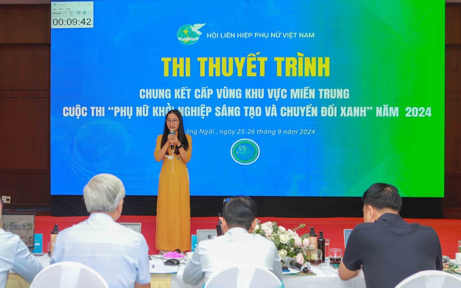Vòng thi thuyết trình vòng Chung kết Cuộc thi cấp Vùng khu vực miền Trung diễn ra từ ngày 25, 26/9/2024 tại tỉnh Quảng Ngãi. 25 ứng viên tiêu biểu được lựa chọn trong khu vực miền Trung (trong đó có 03 Dự án của phụ nữ khuyết tật) trình bày trực tiếp ý tưởng khởi nghiệp, giới thiệu tính mới, tính sáng tạo trong các sản phẩm, hàng hóa, mô hình kinh doanh của mình theo hướng xanh hoặc có tiềm năng đóng góp tạo tác động tích cực tới môi trường phù hợp với chủ đề của Cuộc thi năm 2024.