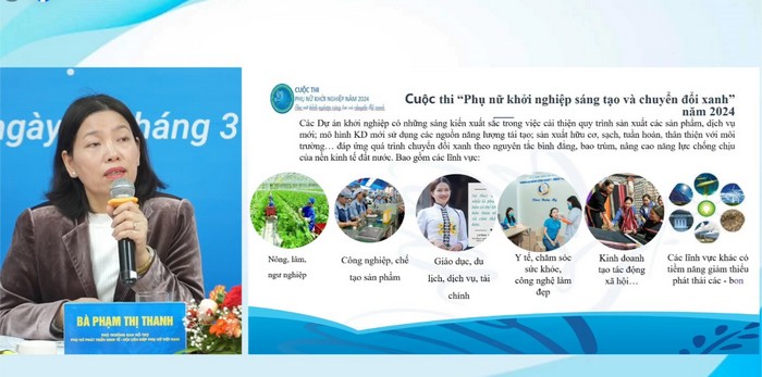 Ngày 14/10/2023, tại Lễ trao giải chung kết toàn quốc Cuộc thi “Phụ nữ khởi nghiệp, phát huy tài nguyên bản địa” năm 2023, TW Hội LHPN Việt Nam đã chính thức phát động Cuộc thi Phụ nữ khởi nghiệp năm 2024 với chủ đề “Phụ nữ khởi nghiệp sáng tạo và chuyển đổi xanh” nhằm tôn vinh các doanh nghiệp, hợp tác xã, tổ hợp tác, hộ kinh doanh do phụ nữ làm chủ có những Dự án khởi nghiệp với những sáng kiến trong sử dụng nguồn năng lượng sạch, năng lượng tái tạo; sản xuất nông nghiệp hữu cơ, tuần hoàn; sử dụng hiệu quả tài nguyên bản địa, giảm thiểu ô nhiễm, giảm phát thải khí nhà kính, công nghệ ít carbon; tiết kiệm nguyên liệu, năng lượng và tài nguyên thiên thiên, nước, hóa chất; các sản phẩm an toàn, tốt cho sức khoẻ con người, thân thiện với môi trường, giải quyết những vấn đề cấp bách, cần thiết của xã hội và tạo ra giá trị thực tiễn cho cộng đồng, mục tiêu là phát triển kinh tế đảm bảo bền vững về môi trường... Qua đó, nâng cao nhận thức của phụ nữ về nền kinh tế xanh, đồng thời khuyến khích các doanh nghiệp, hợp tác xã do phụ nữ làm chủ phát triển sản phẩm mang thương hiệu Việt, góp phần lan tỏa những giá trị tốt đẹp cho cộng đồng”.