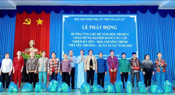 Thời gian qua, cùng với sự quan tâm, hỗ trợ của các Cấp ủy đảng, chính quyền địa phương, các cấp Hội LHPN thị xã Cai Lậy đã tích cực phối hợp các ngành, đoàn thể các cấp cùng với các nhà hảo tâm trong và ngoài địa phương thường xuyên tổ chức các hoạt động nhân đạo từ thiện, an sinh xã hội chăm lo đời sống cho chị em hội viên phụ nữ nghèo vươn lên phát triển kinh tế gia đình. -