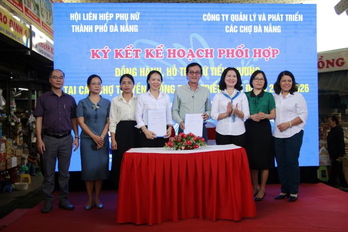 Hội LHPN TP Đà Nẵng vừa tổ chức Chương trình "Nữ tiểu thương với chuyển đổi số và Ký kết Kế hoạch phối hợp với Công ty Quản lý và Phát triển các chợ Đà Nẵng trong đồng hành hỗ trợ nữ tiểu thương tại các chợ truyền thống phát triển, giai đoạn 2024 – 2026" tại Chợ Cồn Đà Nẵng. -