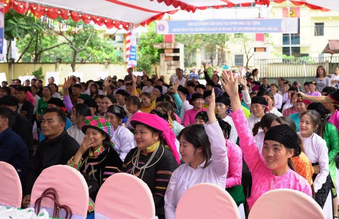 Chị em nhiệt tình tham gia trò chơi trả lời câu hỏi tại sự kiện Trong đó, sự kiện truyền thông kiến thức về sinh đẻ an toàn và chăm sóc sức khỏe trẻ em đã thu hút gần 300 hội viên phụ nữ trên địa bàn huyện Đồng Văn tham gia. Qua đó chị em được tuyên truyền cung cấp thông tin, kiến thức làm mẹ an toàn và chăm sóc trẻ sau sinh; được đội ngũ y, bác sĩ tại địa phương trực tiếp tư vấn chăm sóc sức khỏe. Thông qua sự kiện truyền thông giúp chị em phụ nữ nâng cao hiểu biết, vận dụng để trang bị thêm cho bản thân kiến thức cần thiết về chăm sóc sức khỏe trong thời gian thai kỳ, sinh con và chăm sóc sức khỏe cho trẻ em, đặc biệt là trẻ sơ sinh. Bà Hà Thị Oanh, Phó Trưởng Ban Dân tộc - Tôn giáo, TW Hội LHPN Việt Nam cho biết: Hoạt động được tổ chức với mong muốn trang bị thêm những thông tin, kiến thức chăm sóc sức khỏe cho bà mẹ trong thời gian thai kỳ, sinh con và chăm sóc sức khỏe cho trẻ em, đặt biệt là trẻ sơ sinh; đồng thời, tạo điều kiện cho phụ nữ, trẻ em DTTS được tiếp cận tốt hơn với các dịch vụ chăm sóc sức khỏe tại địa phương, góp phần nâng cao nhận thức, thay đổi “nếp nghĩ, cách làm”, xóa bỏ những tập tục văn hóa có hại đến sức khỏe của phụ nữ, trẻ em. |