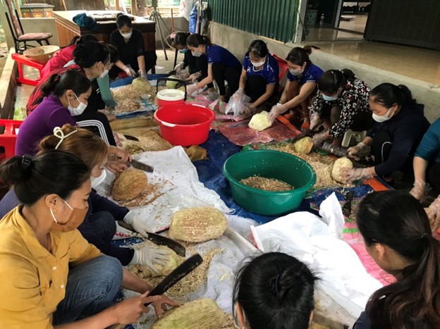 Chị em phụ nữ làm món Nhút - đặc sản xứ Nghệ tặng cán bộ, chiến sĩ Đồn biên phòng