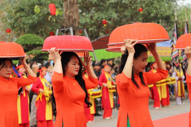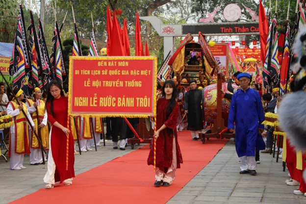 Nghi lễ rước bánh trôi dâng Hai Bà Trưng tại Lễ dâng hương tưởng niệm 1982 năm Ngày giỗ Hai Bà Trưng