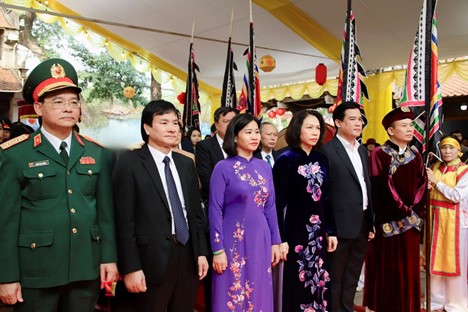 Tại Di tích Quốc gia đặc biệt Đền Hát Môn, Ủy viên TƯ Đảng, Chủ tịch Hội LHPN Việt Nam Nguyễn Thị Tuyến trân trọng dâng hương tưởng Cố Phó Chủ tịch nước, cố Chủ tịch Hội LHPN Việt Nam Nguyễn Thị Định.